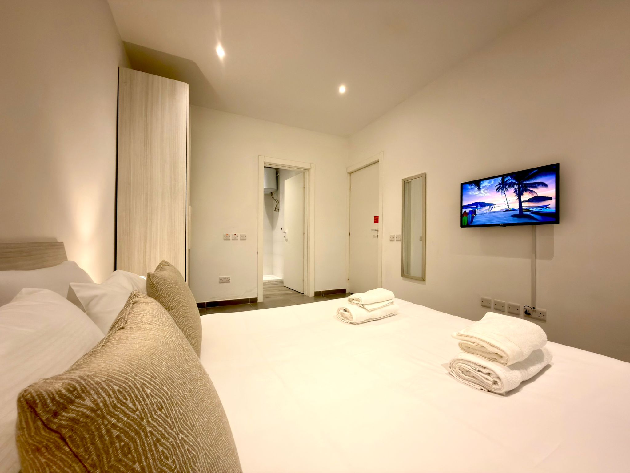 The bedrooms are impeccable, everything is new and well-kept. The description matches the reality perfectly. We had a great night’s sleep.